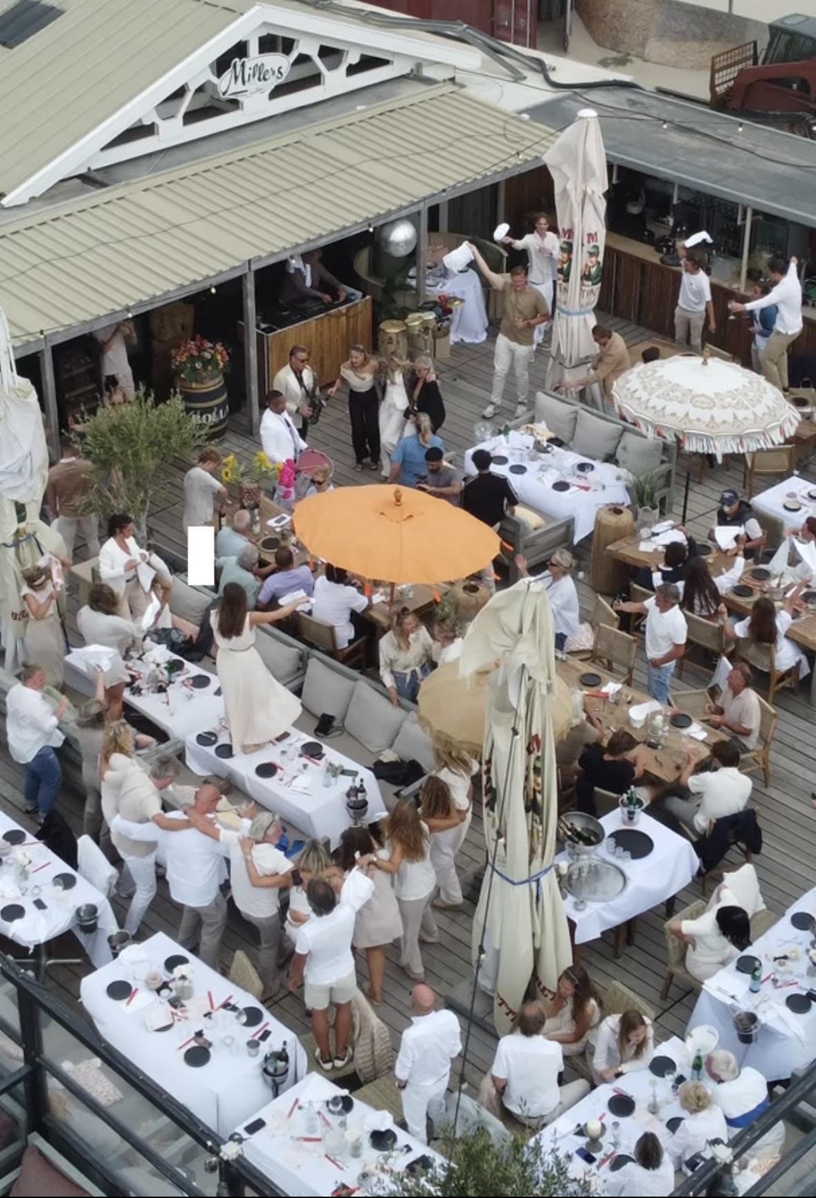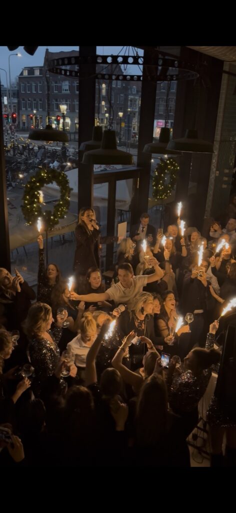 Na het viergangenmenu sluiten we af met een rondje shotjes, waarna de muziek harder gaat en het feest écht begint.