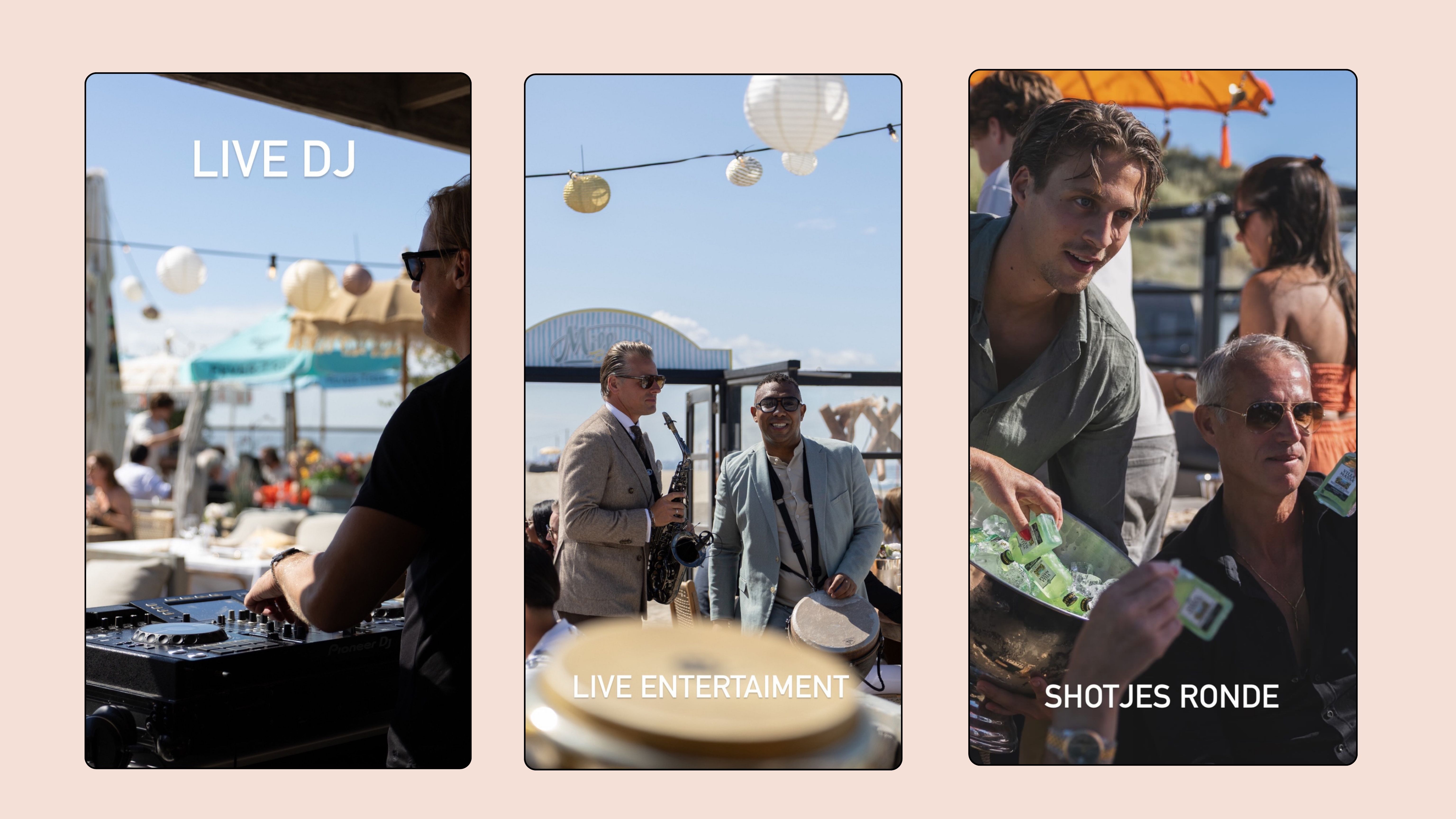 Het live entertaiment wordt afgestemd op locatie en thema. Denk aan saxofinist, percusionist of zangeress.